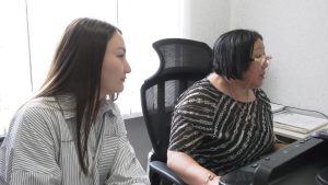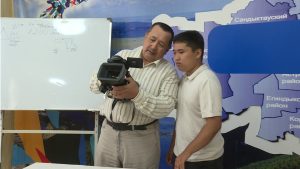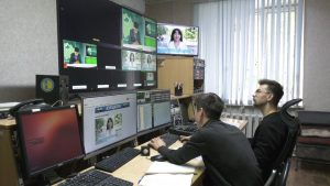 Суреттерде: фото-оператор, Сабырбек Шериязданов; шеф-редактор Гүлнәр Бекенова және редактор Сәния Есімсейітова; техникалық қызметтің жетекші маманы Кремер Станислав және тәжірибеден өтуші жас маман.