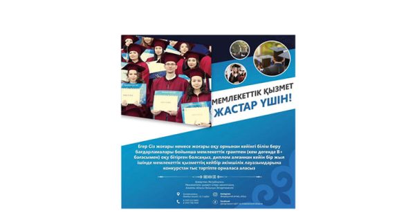 Бүгінгі таңда мемлекеттік тапсырыс шеңберінде оқуларын жақсы аяқтаған жоғары оқу орындарының түлектері диплом алғаннан кейін бір жыл ішінде конкурстан тыс негізде кейбір мемлекеттік әкімшілік лауазымдарға орналаса алады. Осы норма күшіне енген сәттен бастап департамент 29 жас маманды конкурстан тыс тағайындауға келісім берді.