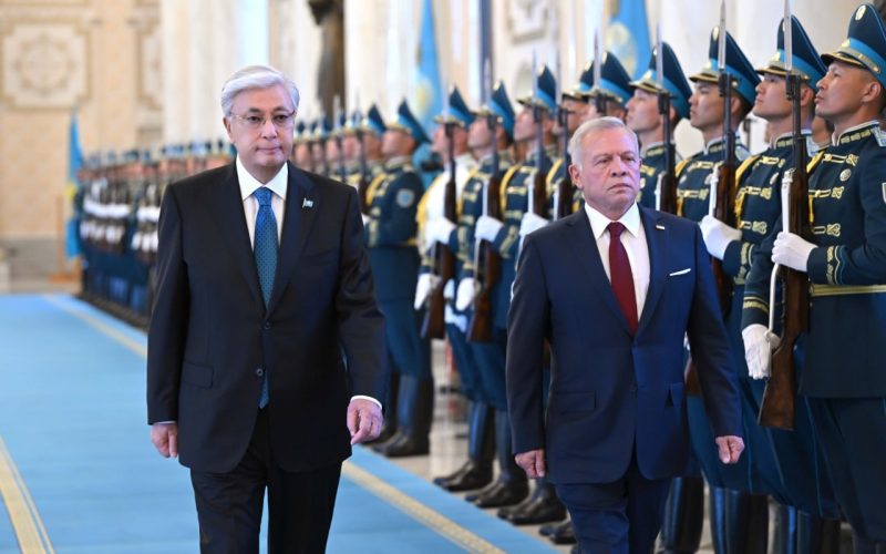 Қасым-Жомарт Тоқаев пен Король ІІ Абдалла бір-біріне делегация мүшелерін таныстырды. Содан соң Құрмет қарауылы ротасының бастығы рапорт беріп, екі елдің мемлекеттік әнұрандары орындалды.