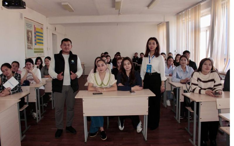 Шара соңында студенттерге кәсіпорын атынан имидждік бас қақпақтары мен блокноттар таратылды.