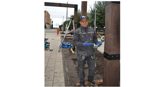 Солардың бірі Еркін Көшікпаев Алматы қаласының «Арт студия» мекемесінен келіп, орталық алаңға көркем бағандарды орнатып, үйлестіруге қол ұшын берді. Ауа райының күрделілігіне қарамастан, ол өзіне сеніп тапсырылған бұл жұмыстарды күні бұрын белгіленген 20 күннің ішінде толық аяқтап шықты.