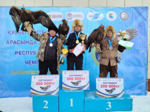 Суреттерде: әйгілі құсбегі Мәсіп Батырханұлы; Ақмола облысының бүркітшілері Ерлан Кенжетаев, Руслан Тумурзин Қазақстан біріншілігінің жеңіс тұғырында.