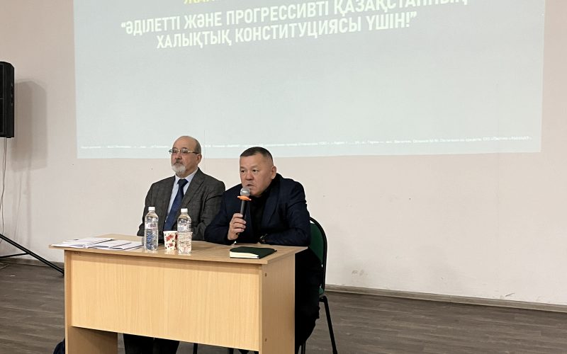 «Әділетті және Прогрессивті Қазақстанның Халықтық Конституциясы үшін» өңірлік коалициясының мүшесі Марат Ибраевтың қатысуымен өткен Азаматтық қорғаныс жоғары көпсалалы колледжі ұжымы және студенттерімен кездесу 15 наурызда өтетін республикалық референдум аясындағы ақпараттық-түсіндіру жұмыстары шеңберінде ұйымдастырылды.